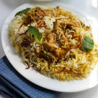 Aromatic basmati rice cooked with tender chicken pieces, infused with spices for a rich flavor.